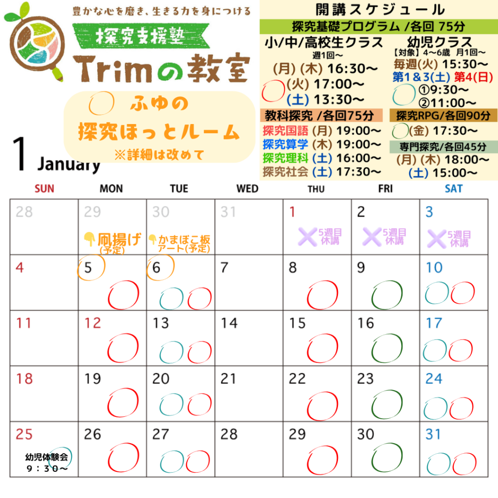 『探究支援塾Trimの教室』では、将来の大人である子どもたちが幸せになる土台作りを目指しています。